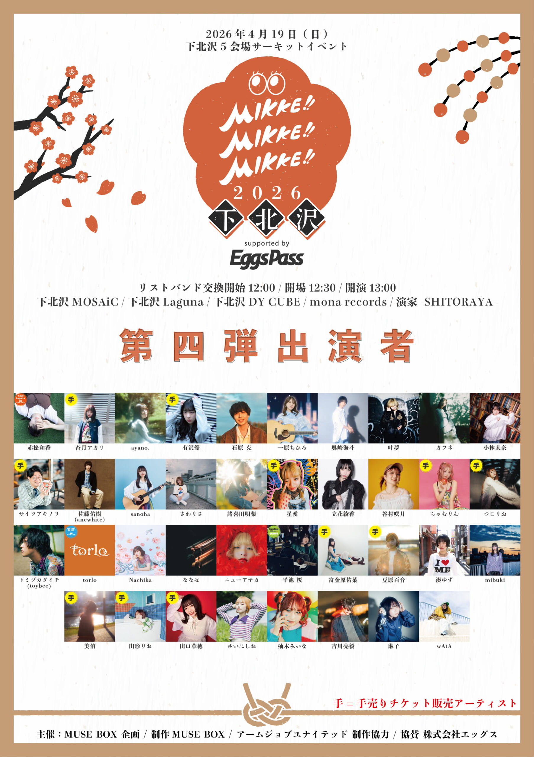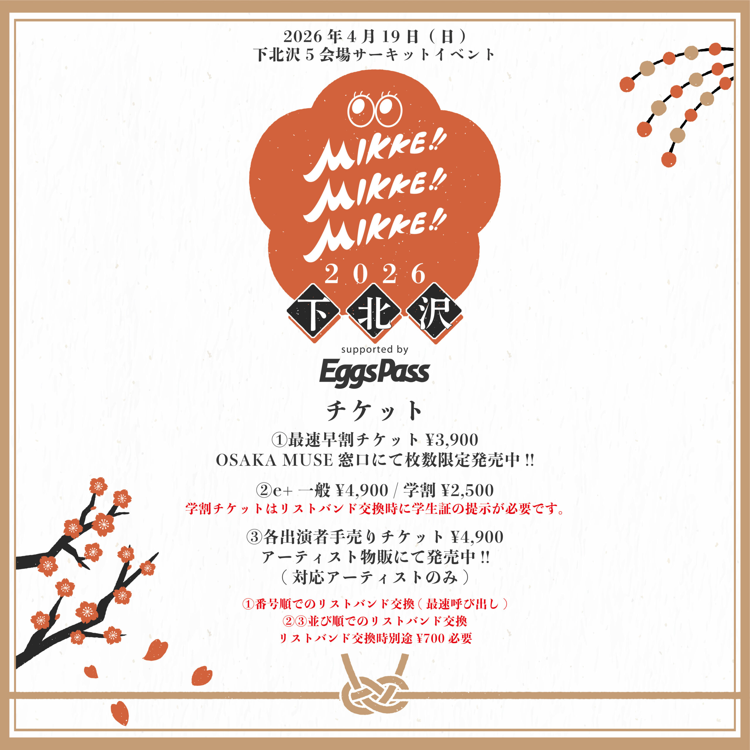 前売り 4900円 / 学割 2500円 / 当日券 5400円 ※リストバンド交換時1DRINK代別途700円必要